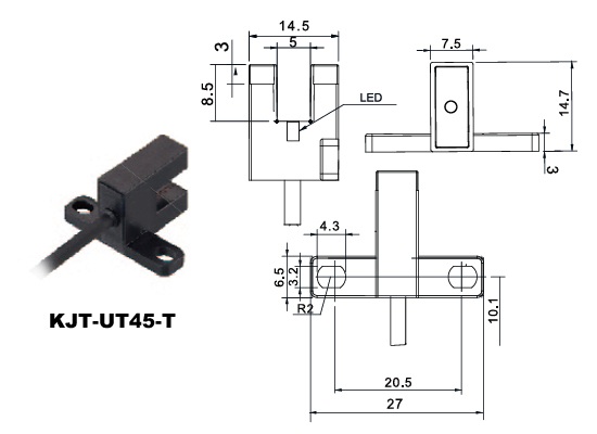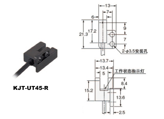 KJT-UT45系列超小型槽型光電傳感器,所有型號(hào)均裝備有兩個(gè)獨(dú)立的輸出-入光時(shí)ON/遮光時(shí)ON,可根據(jù)使用場(chǎng)所的不同,應(yīng)對(duì)不同輸出要求。5-24V寬電壓范圍,3kHz高速響應(yīng),可應(yīng)用于多種工業(yè)環(huán)境。