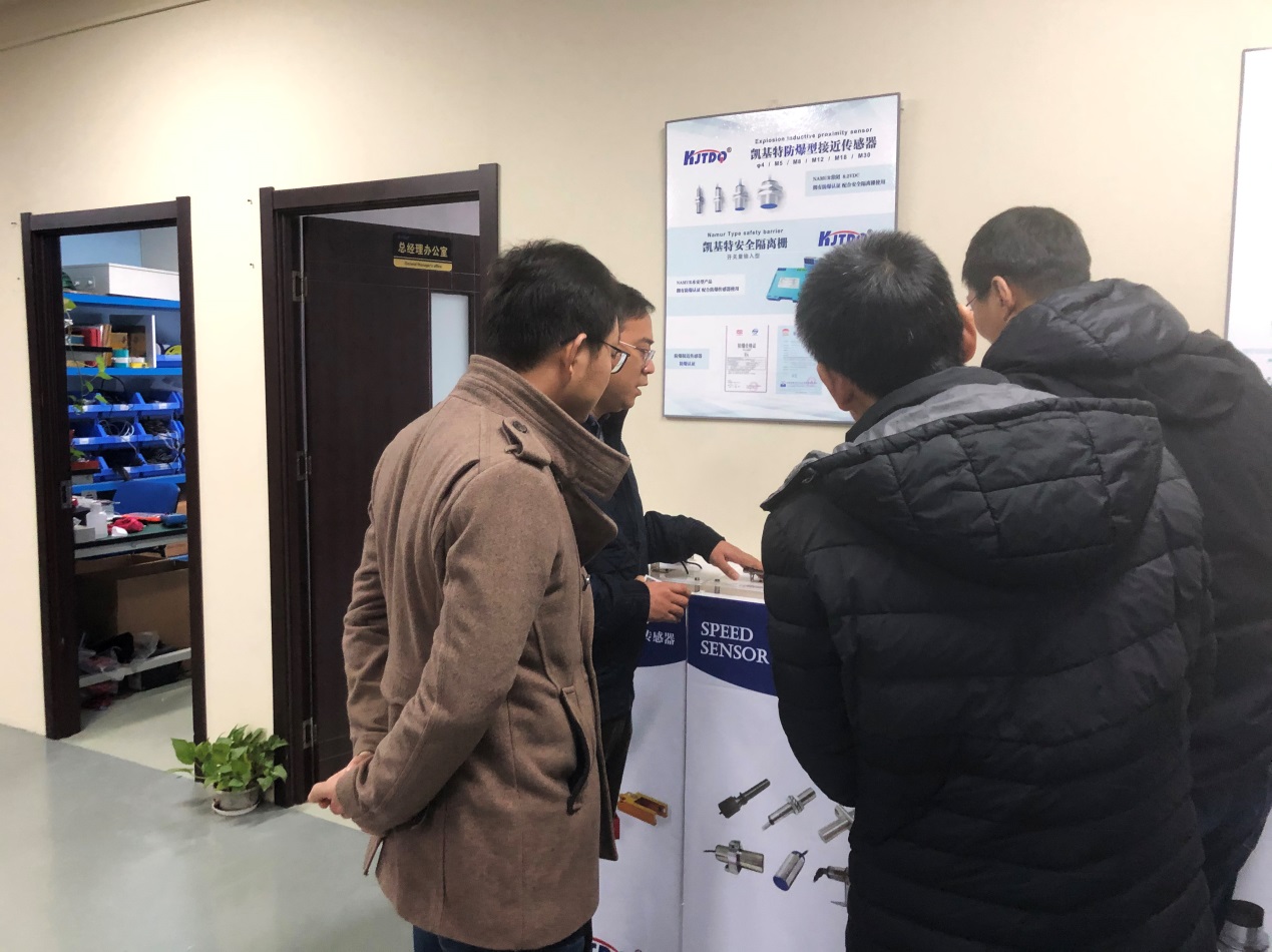 領(lǐng)導(dǎo)一行先后參觀了各個生產(chǎn)車間、研發(fā)部,為所有員工帶來親切的慰問,重點參觀了我司產(chǎn)品展廳,張經(jīng)理向領(lǐng)導(dǎo)們詳細介紹了接近傳感器、光電傳感器、無線傳感器、速度傳感器、壓力傳感器、防爆傳感器、行程限位開關(guān)等,領(lǐng)導(dǎo)們對我司產(chǎn)品評價高度贊賞,充分認可我司產(chǎn)品品質(zhì),也對我司十多年來的高速發(fā)展表示贊嘆!