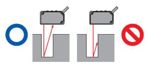? 在狹隘場(chǎng)所和孔中進(jìn)行測(cè)量的情況下,安裝時(shí),請(qǐng)注意避免遮擋投光部至受光部的光路。